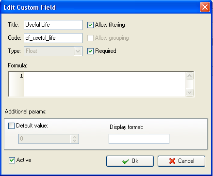 custom field “Useful Life” with code “cf_useful_life”