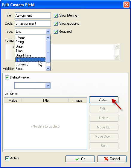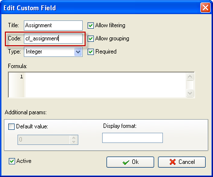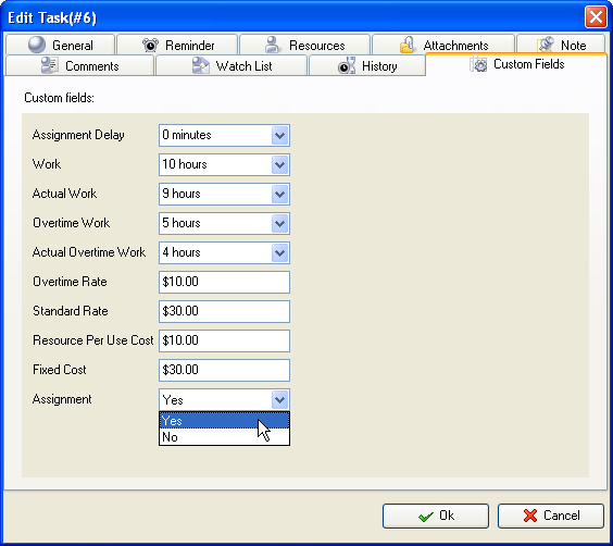 - Select "Yes" or "No" from drop-down list for custom field Assignment and click "Ok" button.