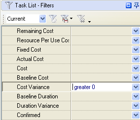 set filter by custom field "Cost Variance"
