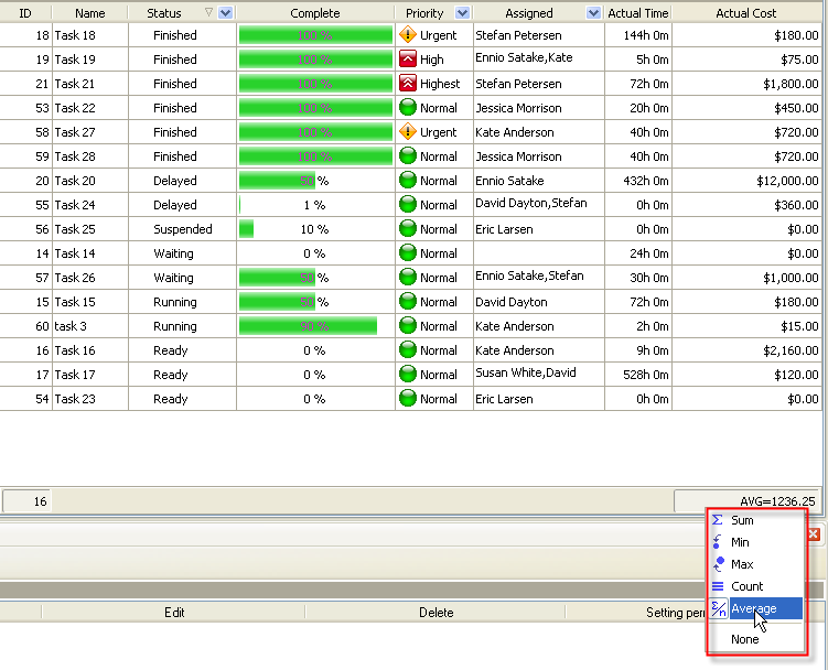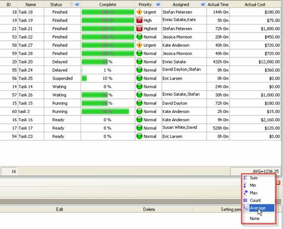 calculated by dividing the total cost of tasks by the number of tasks. Average