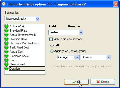 enable the displaying of average duration value select custom field "Duration", do the following: