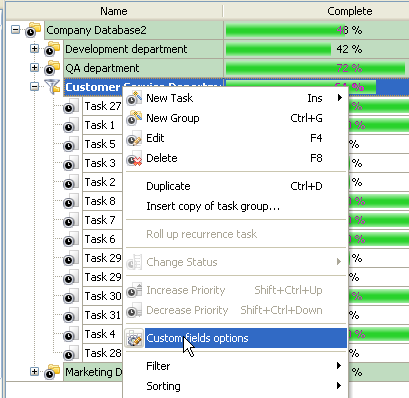 Task Tree select root task group and select "Custom fields options"