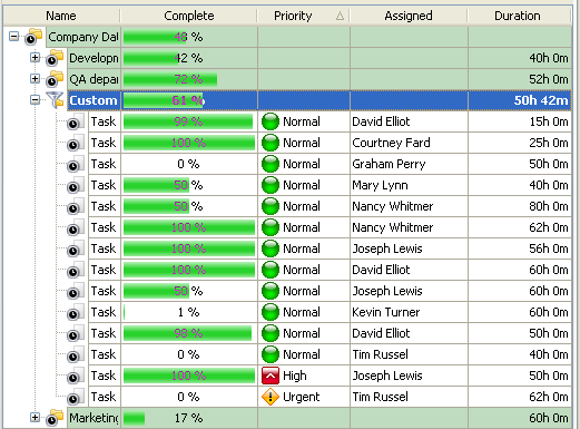 duration of tasks per project for a given time span on Task Tree