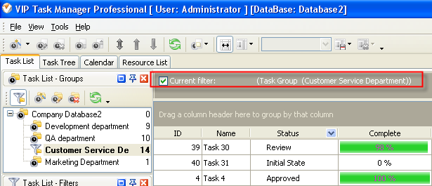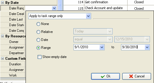 3. Set filter on Task List – Filters panel to display time