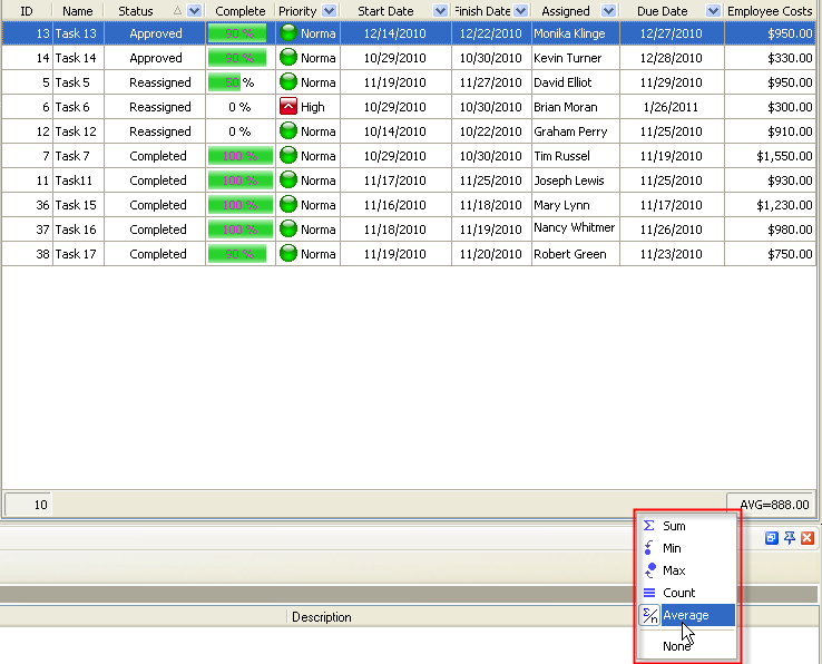 calculated by dividing the total employee cost of tasks by the number of tasks.