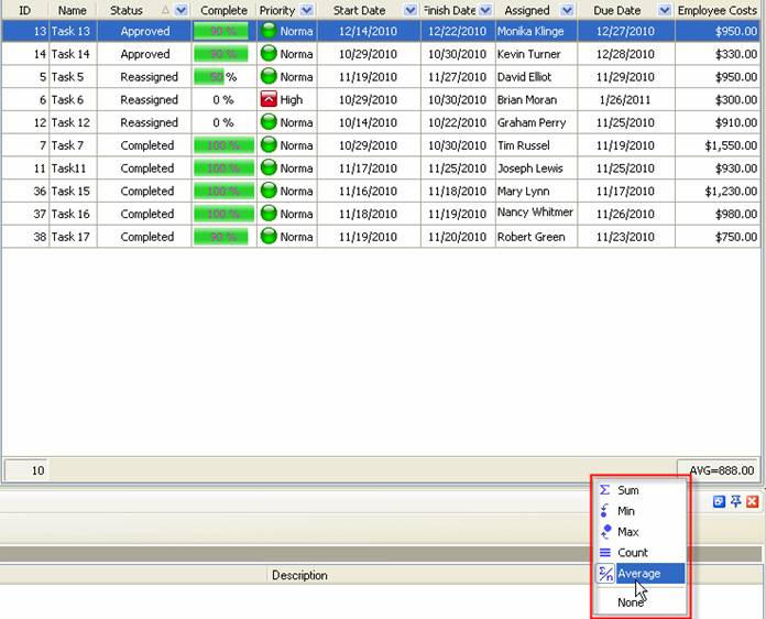to view the average employee costs per particular project, filter your to-do