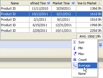 - select "Average” and the custom field name "Time to Market”