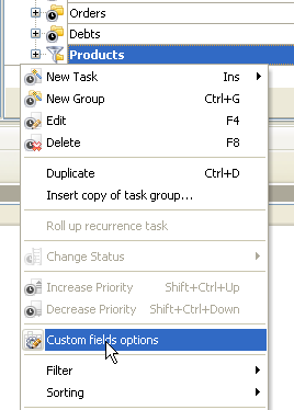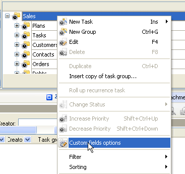 - On Task Tree select root task group and select "Custom fields options”