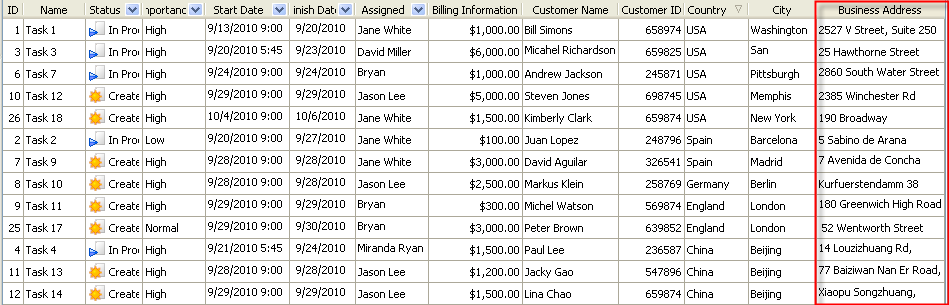 5. to display the value of custom field Business Address on Task List or Task Tree please go to Task List or Task Tree, click Task List Columns or Task Tree Columns button and check the custom field "Business Address"