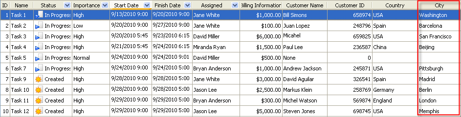 tasks, sort or filter the tasks by city. For example, you can use custom field