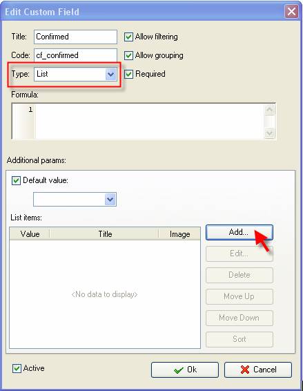- Go to: Tools/Custom fields and press "Ins" button