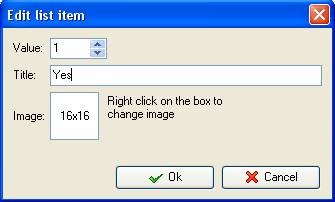 - in Edit List item field select the value number " 1", enter "Yes" in "Title" field and click "Ok" button