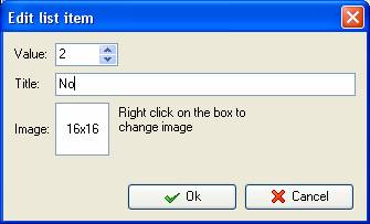 - Click "Add" button again, select the value number " 2", enter "No" in "Title" field and click "Ok" button
