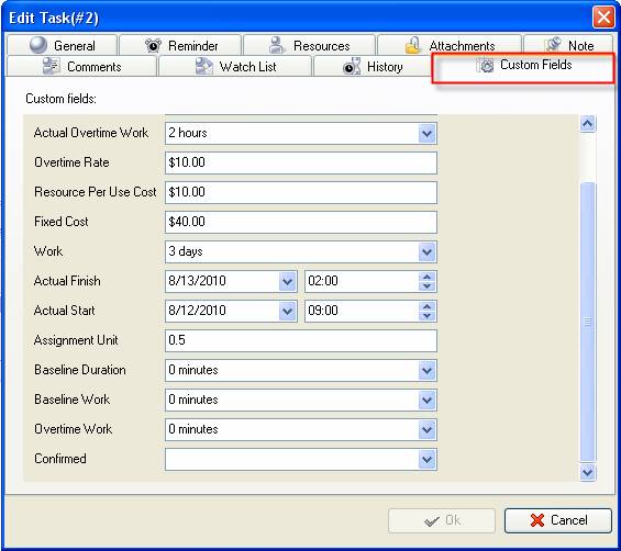 - Open a task and go to Custom Fields tab