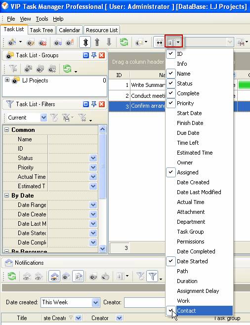 5. to display the value of custom field Contact on Task List or Task Tree please go to Task List or Task Tree, click Task List Columns or Task Tree Columns button and check the custom field "Contact"