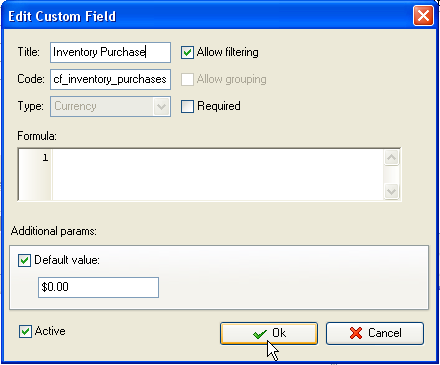 - Add custom field "Inventory Purchases":