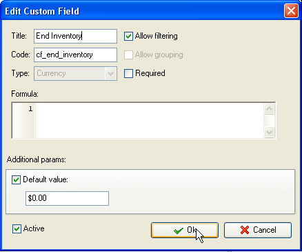 - Add custom field "End Inventory":