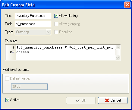 - Create custom field "Inventory Purchases" to show the total cost of inventory purchased over accounting period: