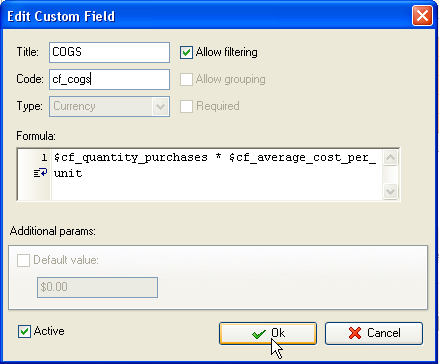 - Add custom field "Cost of Goods Sold (COGS)":