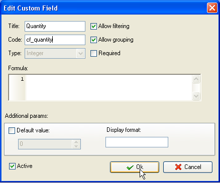 - Add custom field "Quantity" that will show the number of beginning inventory units