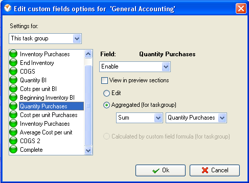 - On Task Tree select task group for which you need to display Cost of Goods Sold and select "Custom fields options"