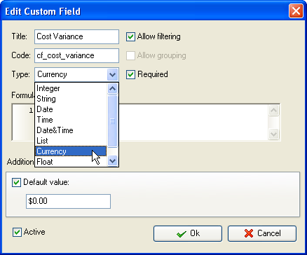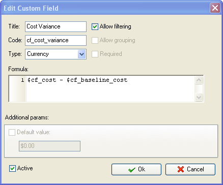 Task List Columns or Task Tree Columns button and check the custom field "Cost Variance"