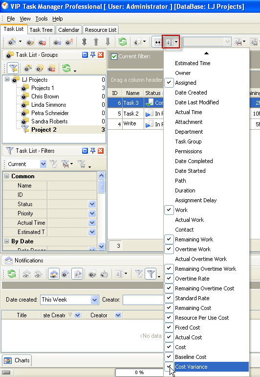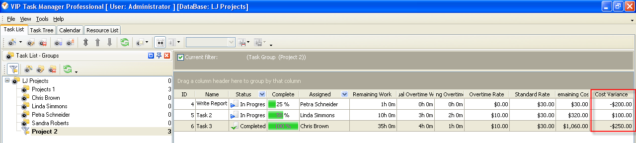 Variance on Task List or Task Tree please go to Task List or Task Tree, click