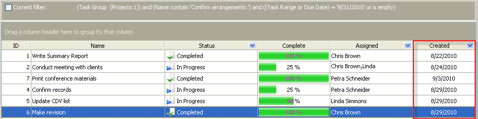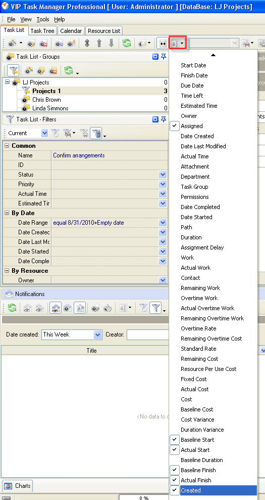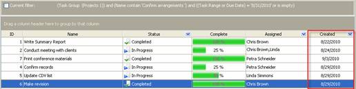 5. to display the value of custom field Created on Task List or Task Tree please go to Task List or Task Tree, click Task List Columns or Task Tree Columns button and check the custom field "Created"