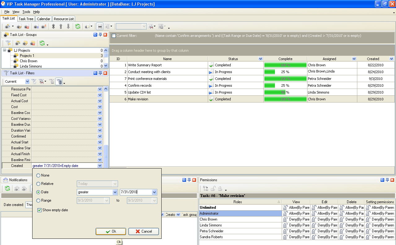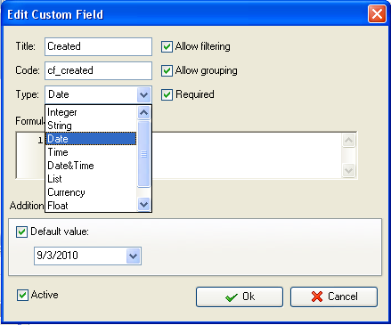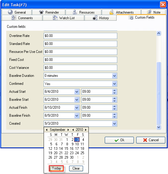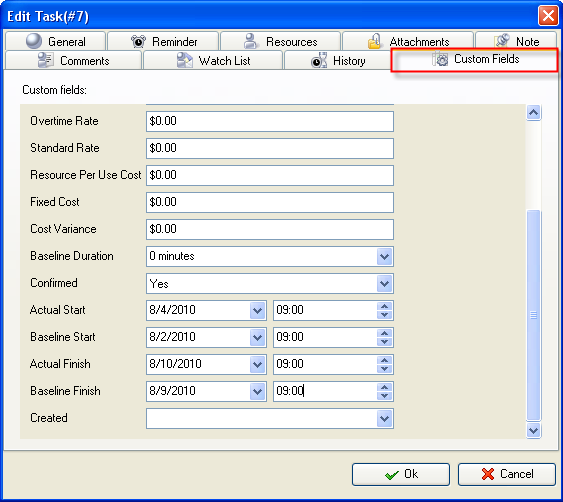 Created custom field shows date and time when the task was actually added to the database of VIP Task Manager Professional.