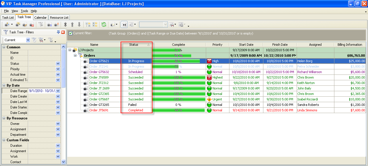 - Task statuses on Task Tree view
