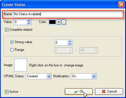 • Click "Ins" button, enter the status name "No Status Available" in Name field and click "Ok" button.