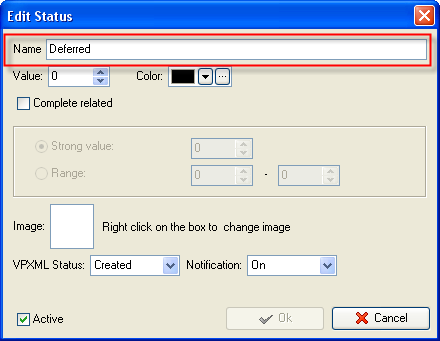 - Click "Ins" button, enter the status name "Deferred" in name field and click "Ok" button.