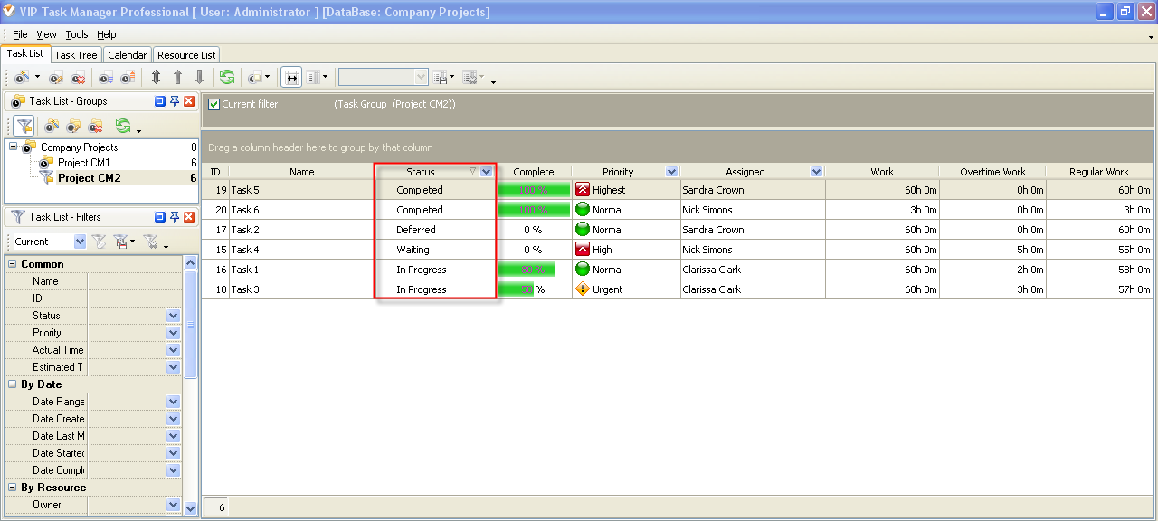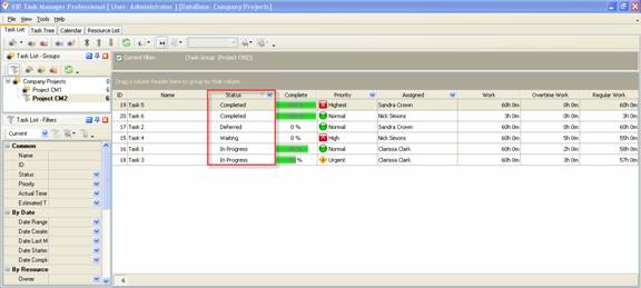 Task Status "In Progress" shows that the assigned resource is being working on this task