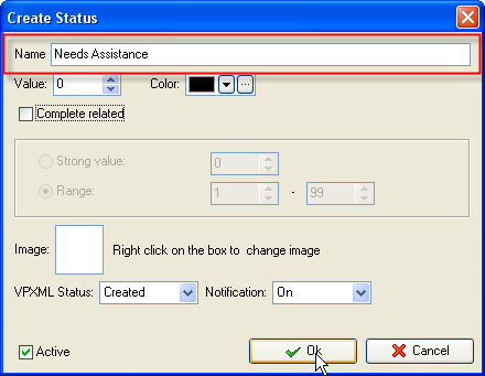 "Needs Assistance" in Name field and click "Ok" button.
