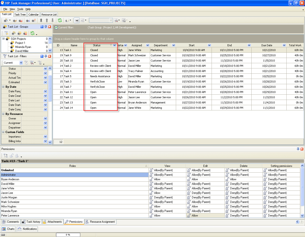or customer. Once the responsible resource sets the task to "Closed", all