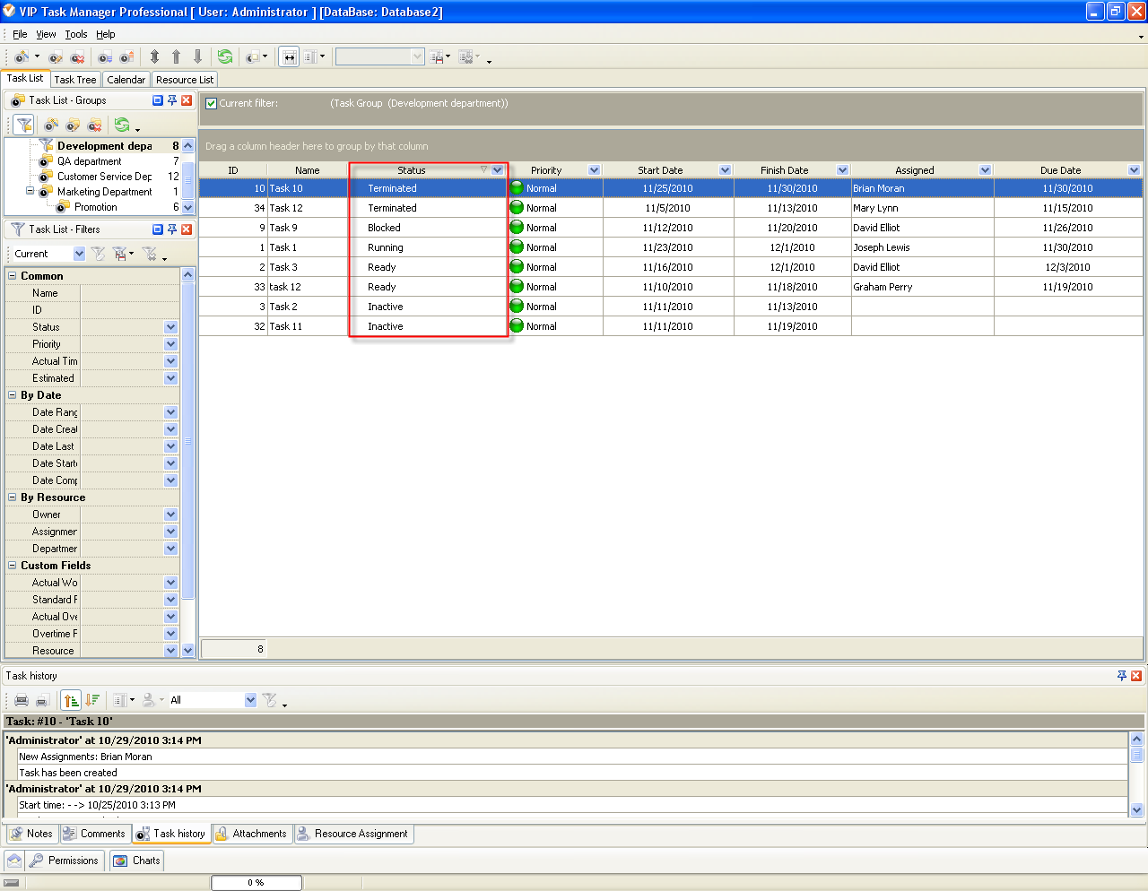 "Inactive" means that the task was created in VIP Task Manager Professional,
