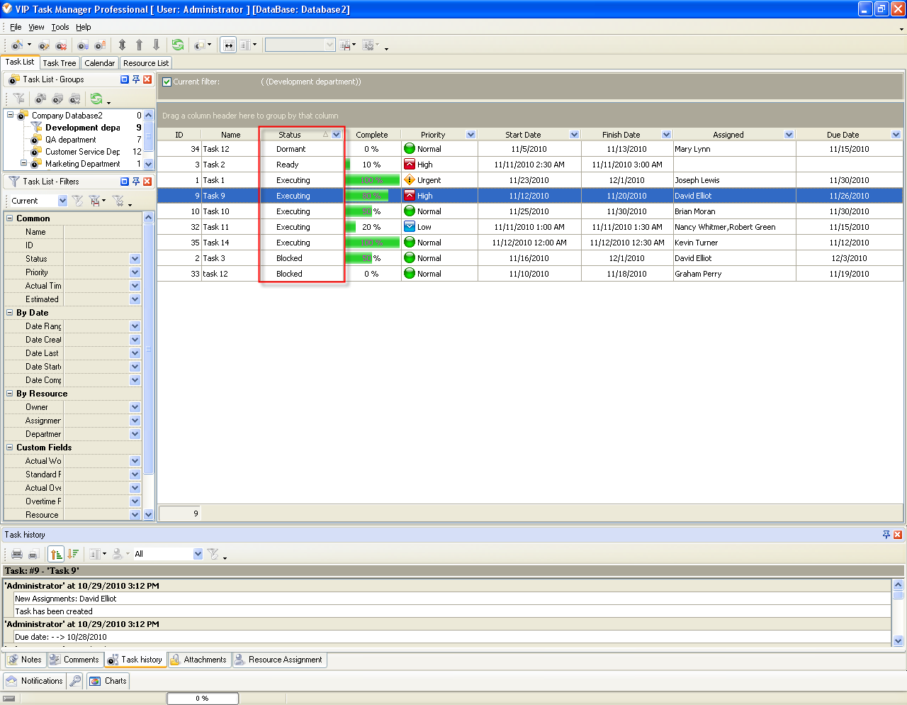 Task status "Dormant" means that the Administrator or responsible resource created the task, however the task hasn’t been started by now.