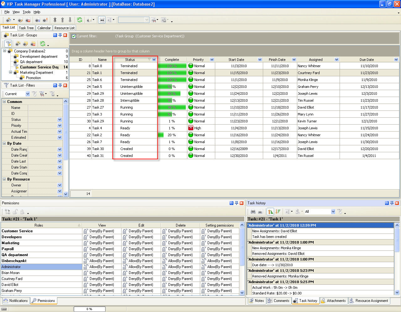 "Created" shows that the task was created in VIP Task Manager Professional.