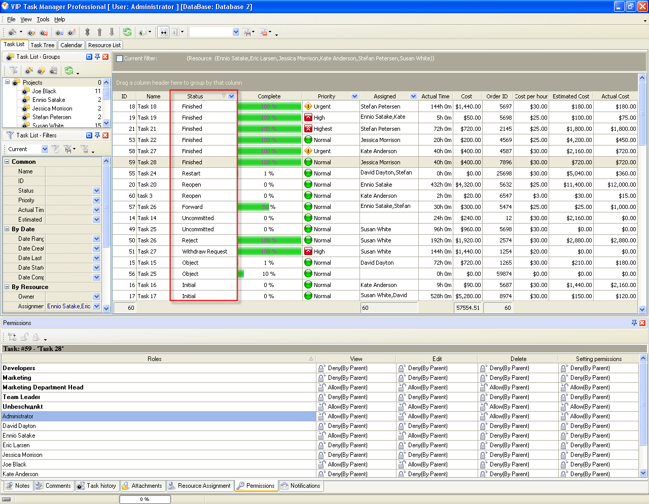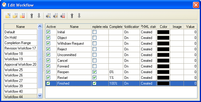Task statuses of Custom Workflow 44 on Task List