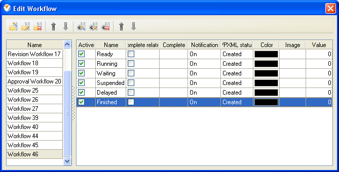 "Waiting", "Suspended", "Delayed" and "Finished".