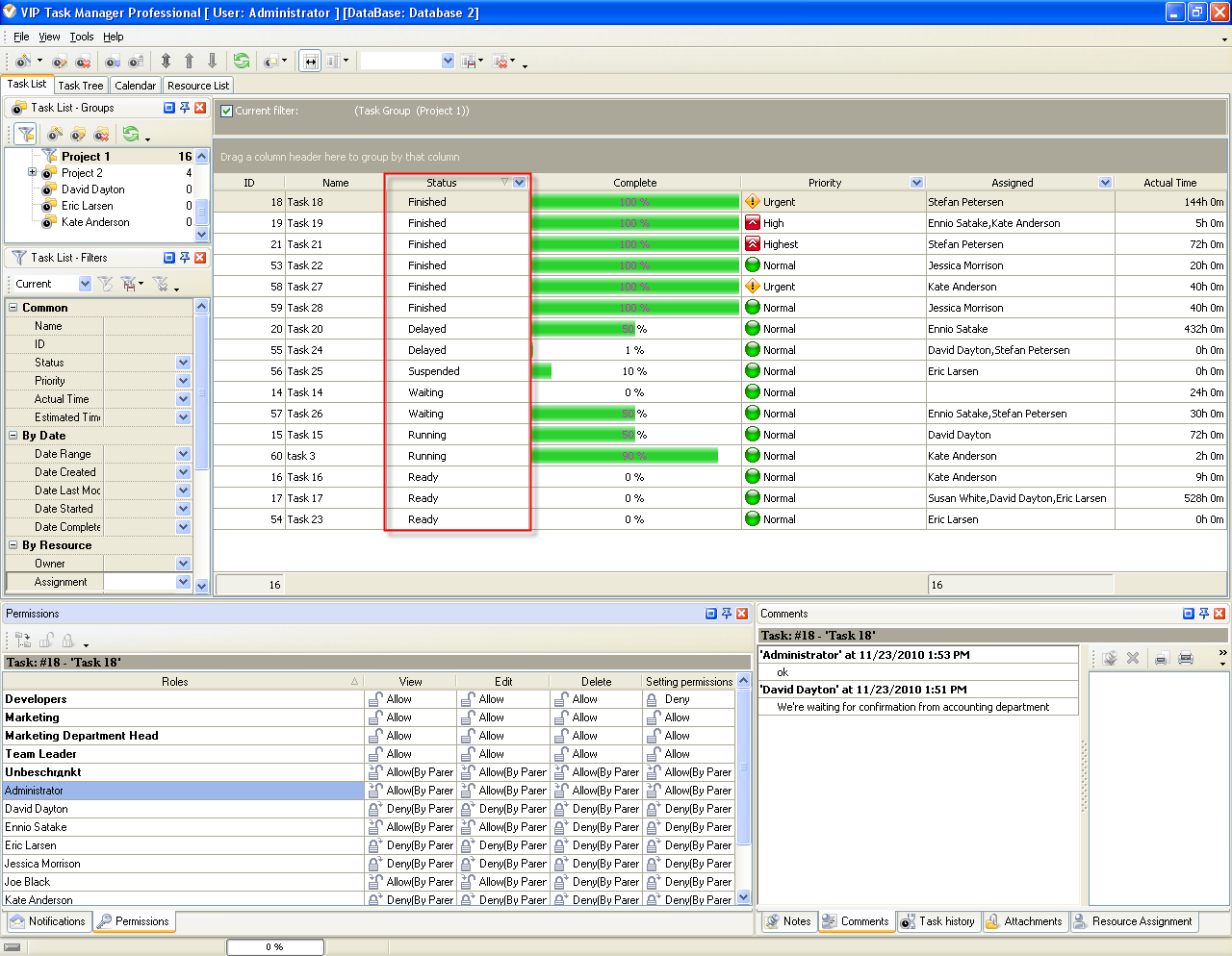 Task statuses of