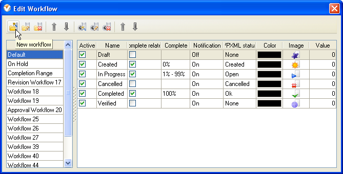 workflow includes the following statuses: