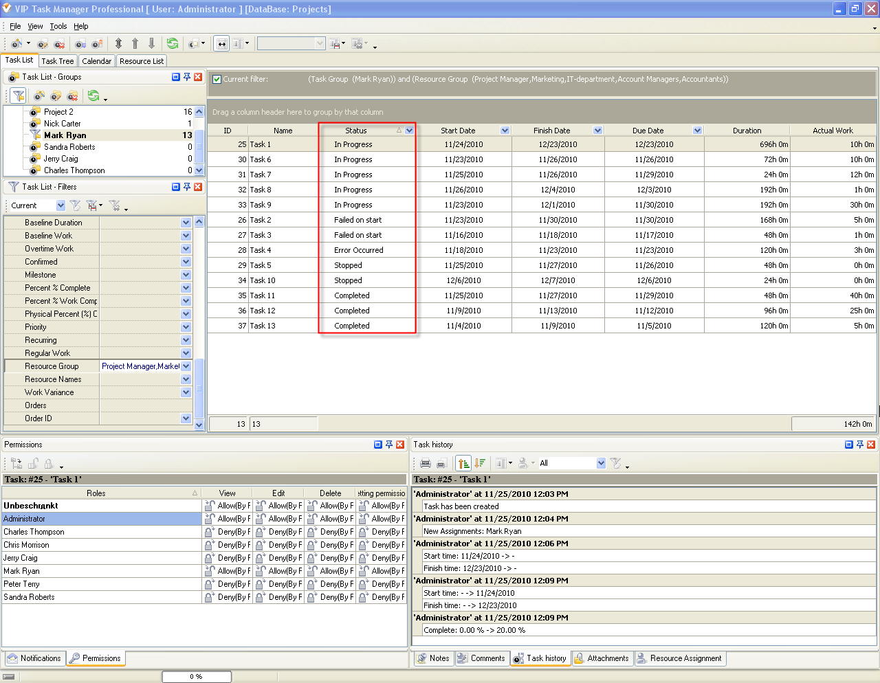Task statuses of