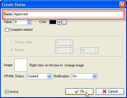 status name "Approved" in Name field and click "Ok" button.