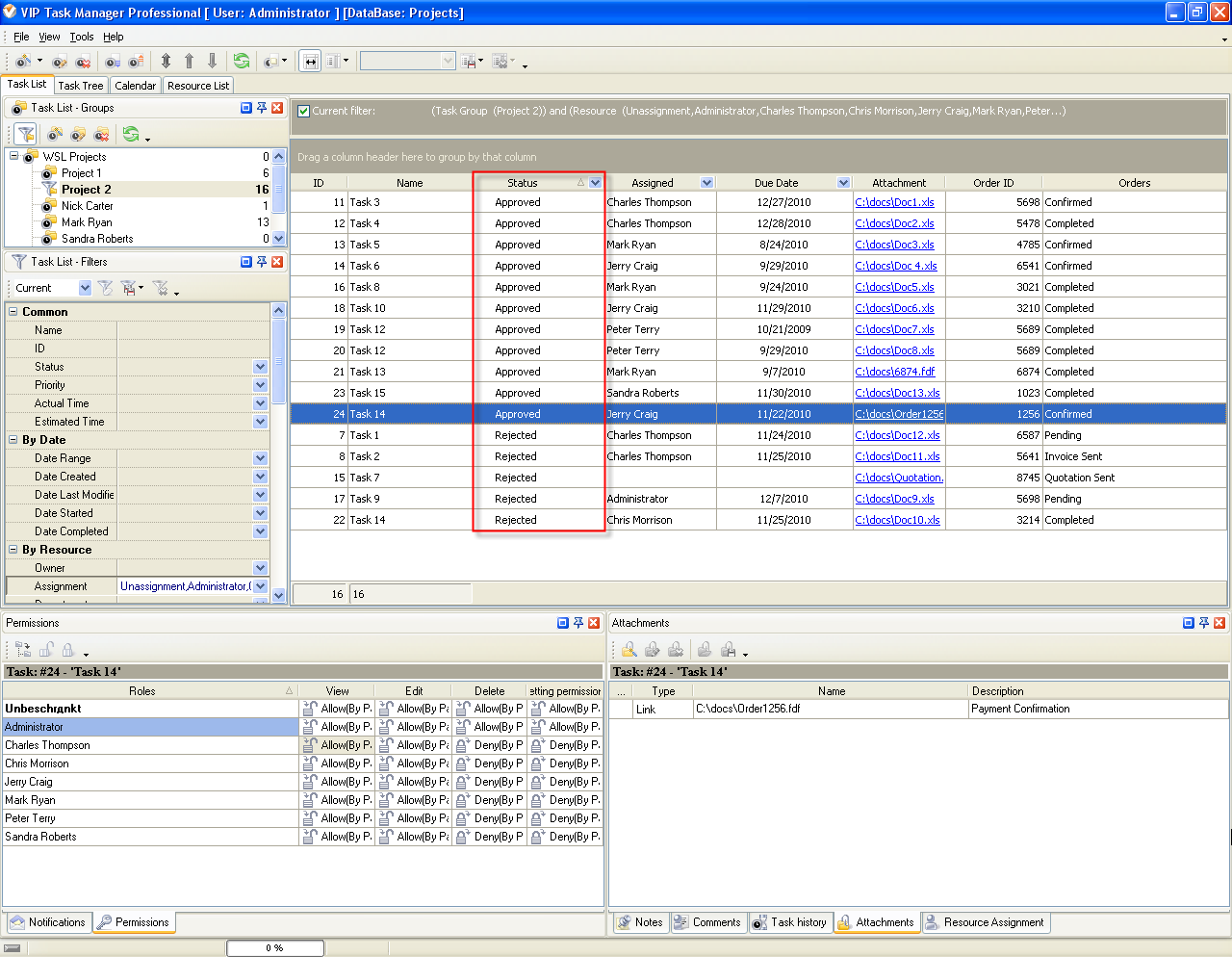 Professional. You can track tasks along with the attached documents trough two