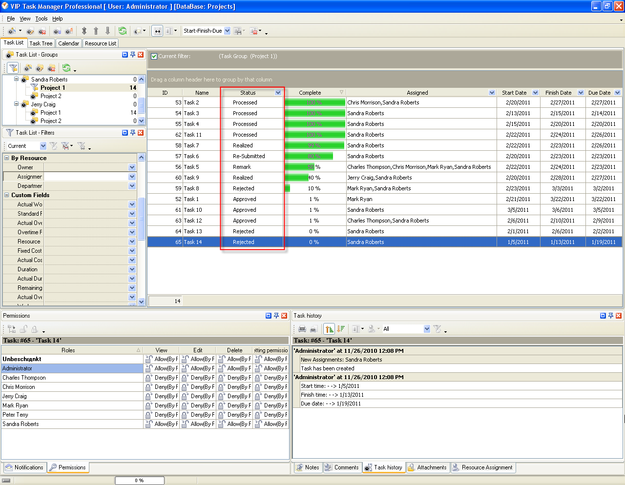Task Status "Processed" shows that the project manager, supervisors or any other responsible stakeholders checked all work on the task and approved it.