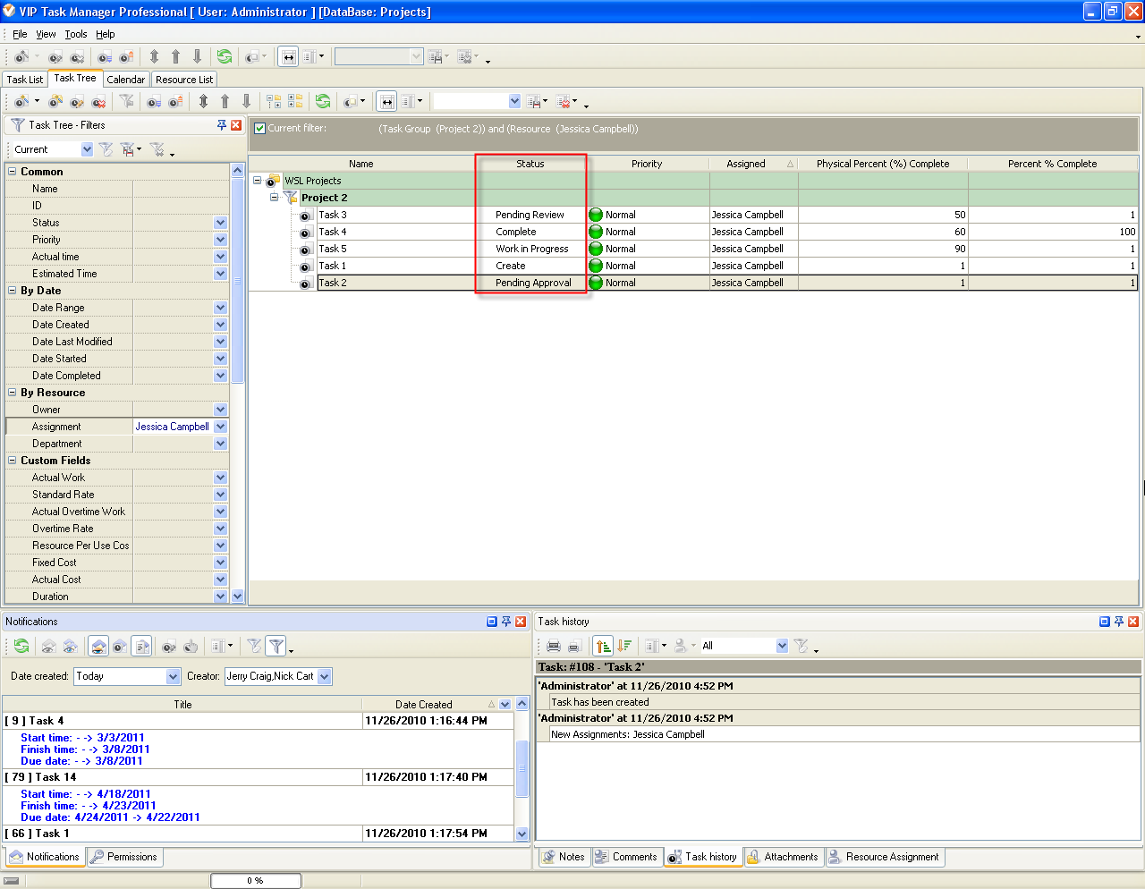 task is created in VIP Task Manager Professional, it is set to "Create" status.
