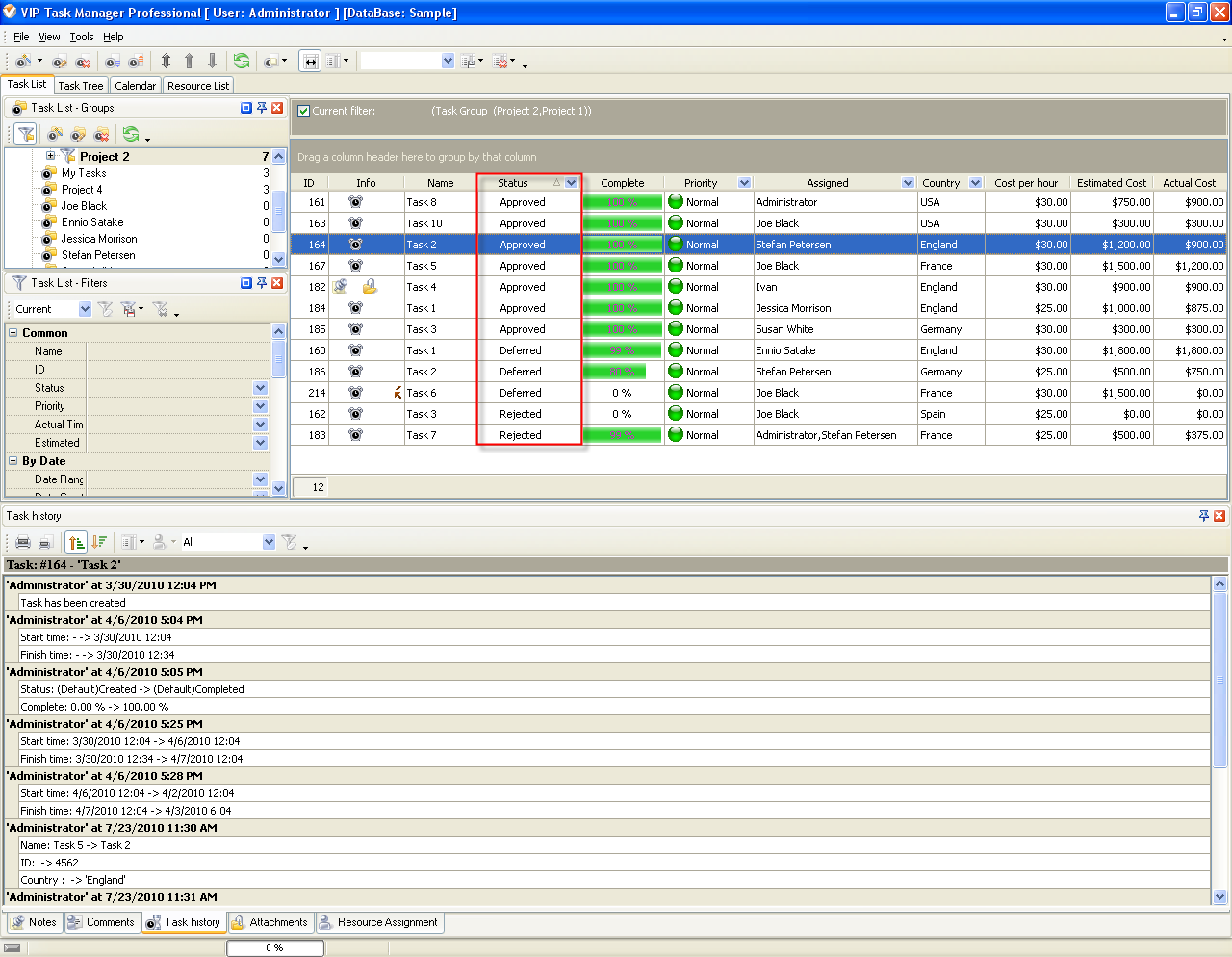 status "Deferred" is marked if the task is waiting for some event to trigger