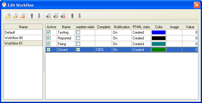Task statuses of Custom Workflow 61 on Task List