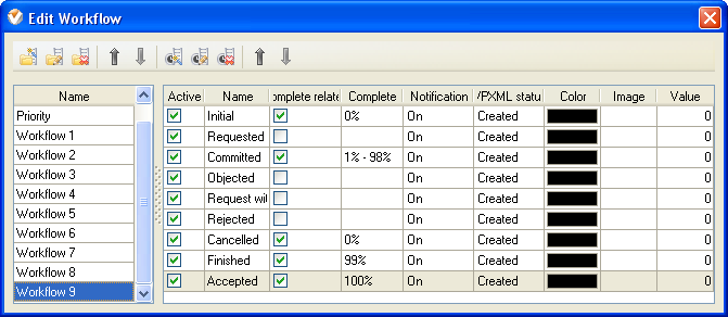 Custom Workflow 9: Initial –Requested – Committed – Finished – Accepted – Objected - Request withdrawn – Rejected - Cancelled.